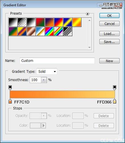 然后设置混合选项>渐变叠加。按下图设置: