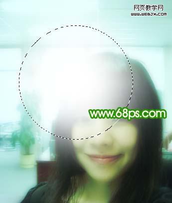 2、新建一个图层,按ctrl + alt + shift + e 盖印图层,执行:滤镜 > 模糊 > 高斯模糊,数值为5,确定后把图层不透明度改为:50%,按ctrl + m 适当调暗一点。然后新建一个图层用椭圆选框工具拉出下图所示的正圆选区,按ctrl + alt + d 羽化50个像素,然后填充白色,效果如图6。