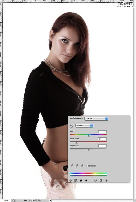 选择 图像——调整——色相饱和度。把饱和度降低到 –65