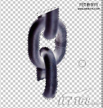 (6)在“图层0”的下方新建“图层1”,白色填充画布,便于观察操作效果,单击工具箱中的“橡皮擦工具”,将铁链上部擦为渐隐效果,如图09所示。