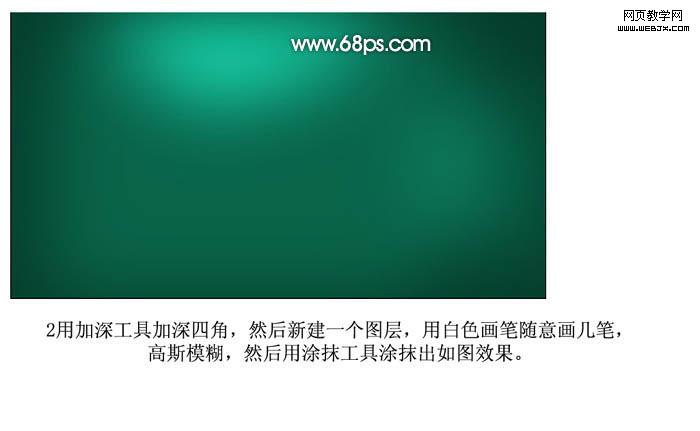 2、用加深工具加深四周,然后新建一个图层,用白色画笔随意画几笔,执行:滤镜 > 模糊 > 高斯模糊,然后用涂抹工具涂抹出如图效果。