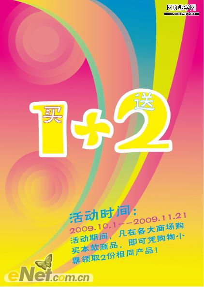 整体画面采用亮丽的颜色,给人清新自然的色彩效果,在文字的处理过程中,将产品促销的文字醒目的显示出来,起到突出主题的作用。通过本例大家可以掌握一些商场促销海报的制作,并不是华丽就好,有时候清新醒目也可以起到相应的作用。