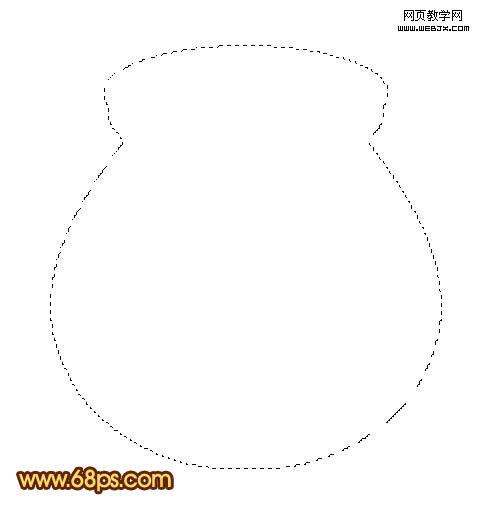 1、新建一个600 * 600 像素的文件,背景暂时填充白色。新建一个图层命名为“主体轮廓”,用钢笔工具勾出陶罐的轮廓,转为选区如图1,再填充黑色,效果如图2。