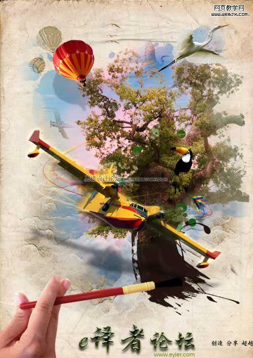 将飞机从下载的图片中抠出来,将其置于如图所示位置。