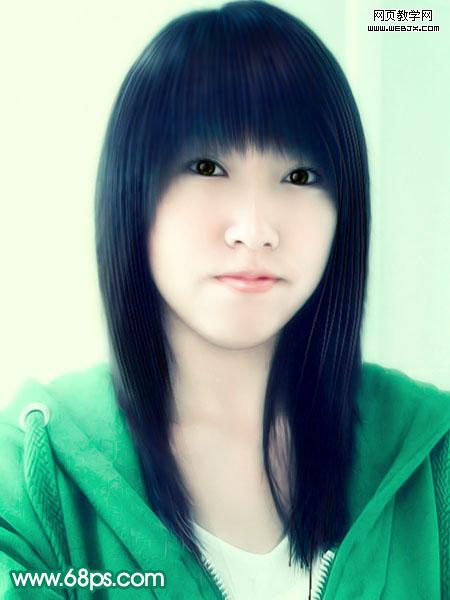 3、新建一个图层,按ctrl + alt + shift + e 盖印图层,简单的给人物磨下皮,再适当用涂抹工具把人物头发部分涂顺畅,大致效果如下图。