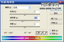 4.减红。将编辑选项中的“全图”改为“红色”,并向左拖动饱和度滑块,从而降低图片中的红色数值。
