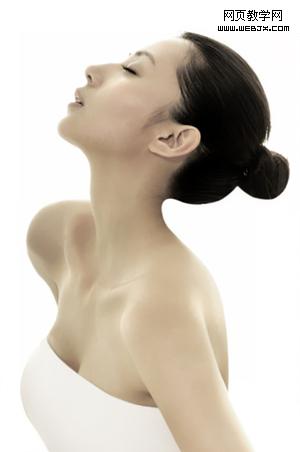 原片分析:这张照片需要改善的地方是五官和颈部,主要要对颈部进行调整。原片中模特的脖子有些短,看起来感觉脸型有些不对称。