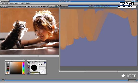 Photoshop教程:美女逗猫色块图片