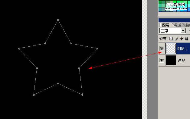 1、新建一个文档,【ctrl+i】背景反向成黑色,(你也可以直接设置成黑色,方便我们制作光效)。新建一个图层。并使用【自定义形状】绘制一个五角星星。