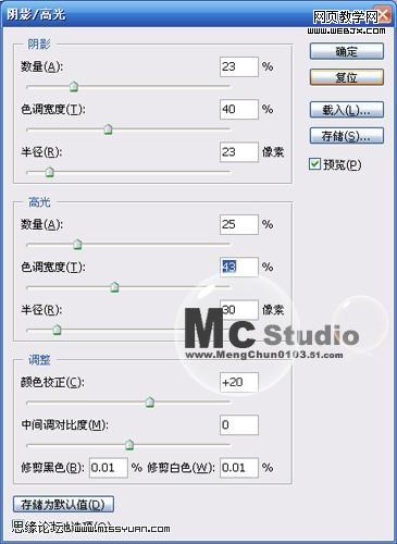 3.感觉明暗不均匀,来一个阴影/高光,设置与效果图如下: