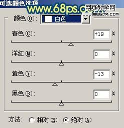 10、创建可选颜色调整图层,对白色进行调整,参数设置如图17,确定后把图层不透明度改为:10%,效果如图18。