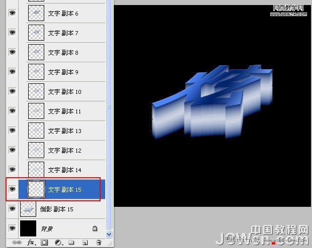9、为了方便观察和操作,新建一个组,把文字图层全部放到里面(顺序不要搞乱了),取消这个组的显示,并选择倒影图层为当前操作。