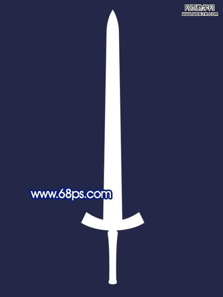 1、新建一个600 * 800像素的文件,背景填充颜色:#232848,新建一个图层命名为“主体轮廓”,用钢笔勾出宝剑的轮廓,转为选区后填充白色,效果如下图。