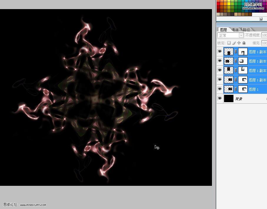 17.把当前的变化图形(除背景外)合并成一个~复制一个副本并旋转一个度数~如下图所示~