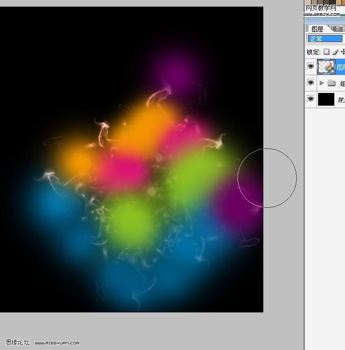 注意,这里的图层混合模式还是滤色~我们合并带有蒙版的图层和带有混合模式的图层的时候,会有问题出现