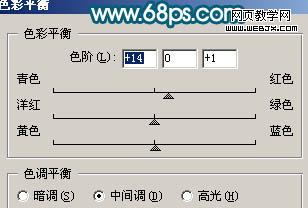 10、创建色彩平衡调整图层,参数设置如图13,效果如图14。