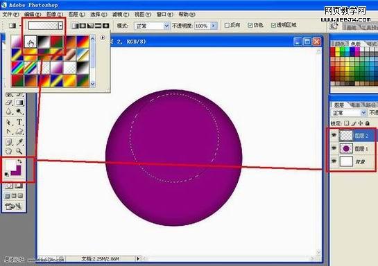 新建图层,使用圆形选框工具,绘制一个圆形选区,给他填充一个紫色.