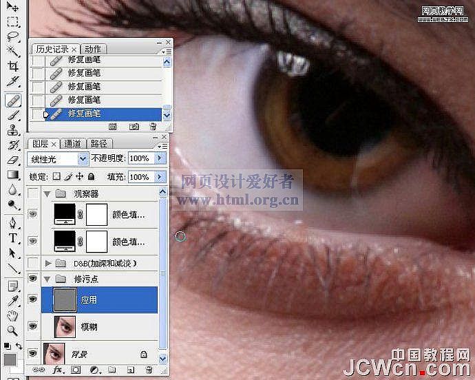 21、选中应用图层,使用“修复画笔工具”处理眼白的血丝。