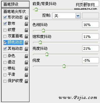 3、选择你刚定义好的画笔,按F5进行画笔设置。所有设置见下面图示(仔细设置,这步很关键):