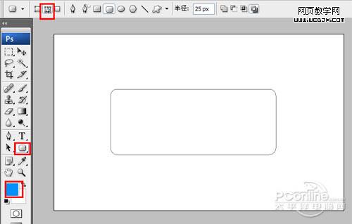 2、在图层面板上单击创建新图层按钮,新建一个图层4,再工具箱选择圆角矩形工具,并按住键盘中Shift不放在工作区拖出一个圆角矩形,按键盘快捷键Ctrl+Enter转换为选区,设置前景色为蓝色,按键盘快捷键Ctrl+D取消选区,如图2所示。效果图如图3所示。