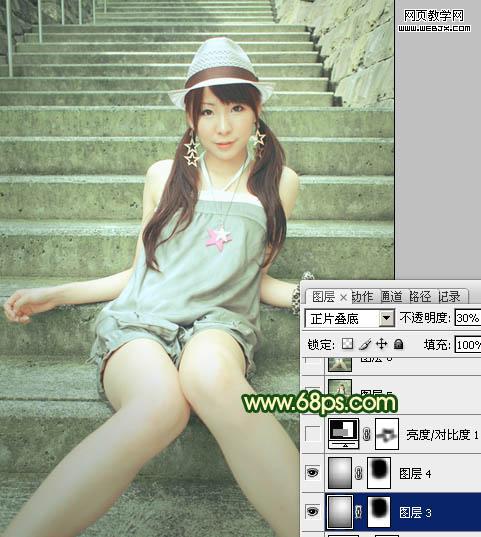 13、新建一个图层,适当把暗角部分加强一点,效果如下图。