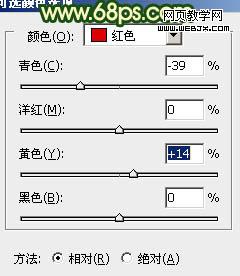 11、创建可选颜色调整图层,对红色进行调整,参数设置如图22,效果如图23。