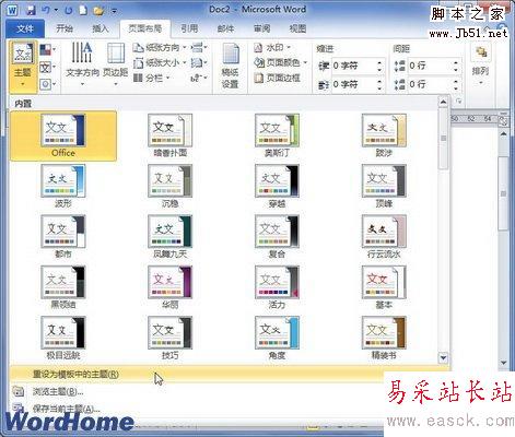 用户如果希望一次性修改当前Word2010文档中所有SmartArt图形的主题效果,可以在Word2010文档窗口“页面布局”功能区进行操作,具体步骤如下所述: