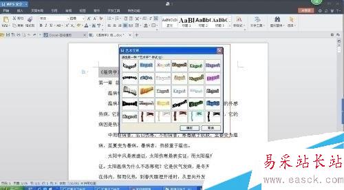 6:点击“艺术字”按钮,这时会弹出“艺术字库”对话框。选择需要的艺术字样式后点击“确定”按钮。