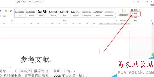 2、然后点击【开始】下方工具栏中的【替换】按钮,或者使用组合键CTRL+H,弹出【查找和替换】对话框,如图所示
