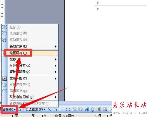 9、在弹出的绘图工具栏中点按绘图工具标志 在弹出的菜单中执行绘图网格命令