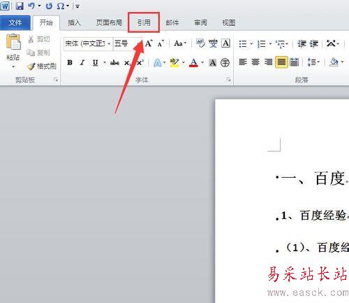 4、在这些标题都做好索引标记之后,再点击左上角主菜单栏中的“引用”菜单。(如下图)