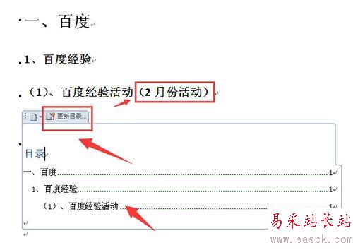 9、这样就可以看到标题更新之后,自动生成的目录也会自动更新了。(如下图)