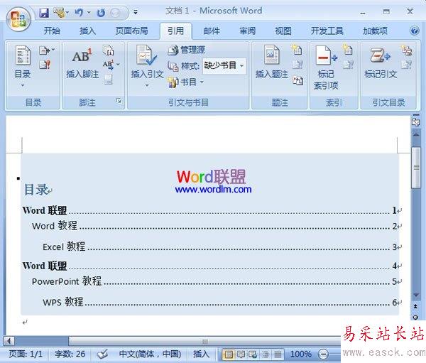 ⑤按下确定键之后,一个简单的目录就自动生成了。由于篇幅的原因,关于目录更多知识会在之后的教程中给大家一一讲解。