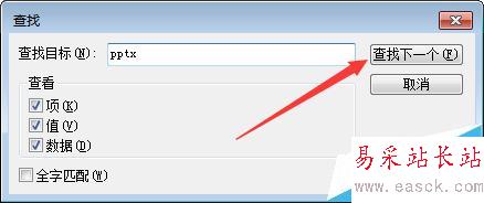 9、如果在注册表中使用CTRL + F查找时,没有找到相应的目录,请注意图中标出的“查找下一个”。CTRL + F只能查找该位置后的内容,请选择HKEY_CLASSES_ROOT目录中的第一个目录后,重新查找。