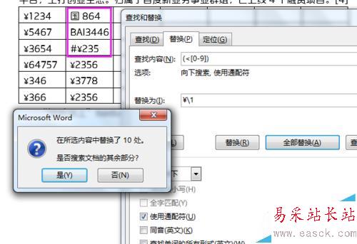 3、下图是替换为关于勾选不勾选通配符的区别。