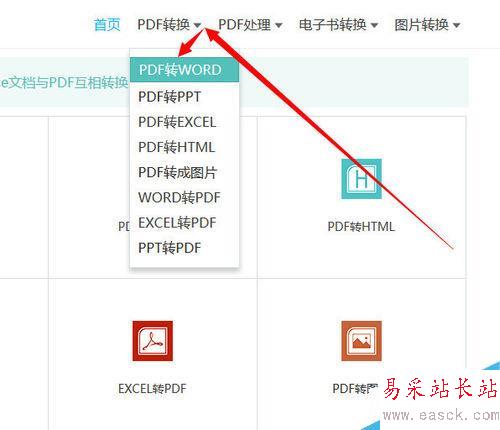 我们在pdf转换功能下选择要转换的文件格式,也就是“pdf转word";
