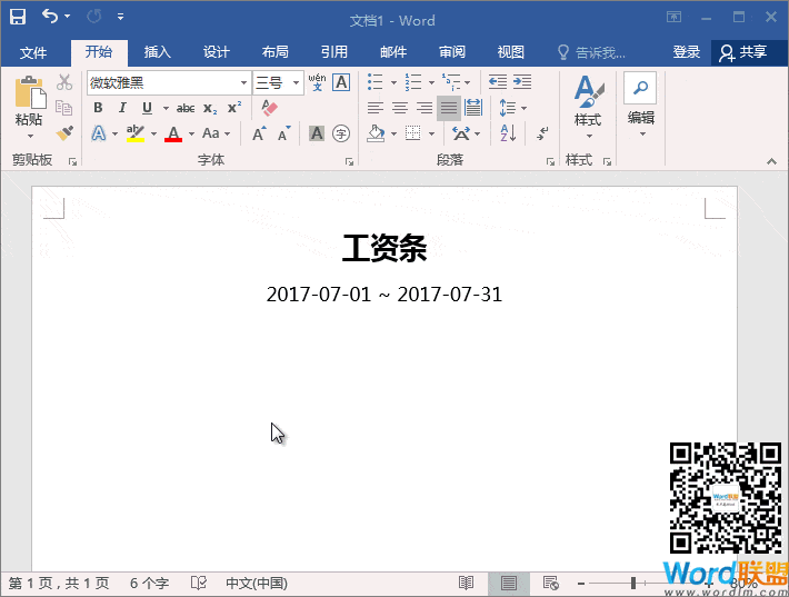 步骤一、打开Word空白文档,然后插入工资条和日期等有关信息内容文字,然后居中,稍微调整一下。
