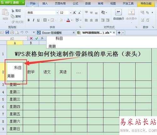 6、至此完整的WPS表格快速制作带斜线的单元格(表头)制作完成;