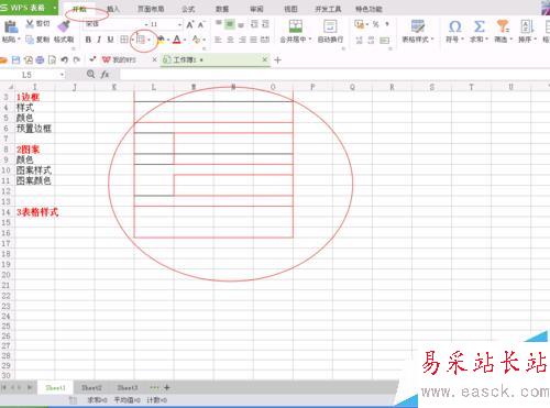 1、边框设置 ,样式 颜色 预置边框 边框设置,自己也可以设置边框,可以绘制一些颜色样式。还是挺方便的。可以手工来画画。
