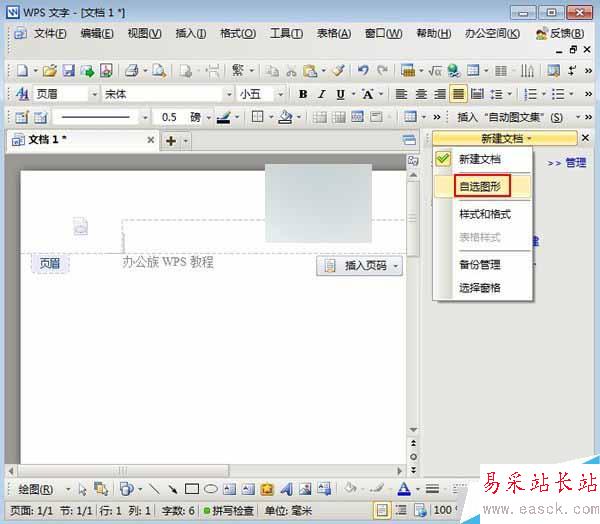 点击新建文档按钮,选择自选图形。
