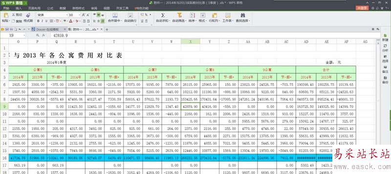 1、如图一:色彩为绿色部分的“项目”(A、B二列)和表头(第1-5行),在窗口无法显示完整行列。当你编辑未显示的部分时,表中“项目”一列也随之移动,结果如图二所示。