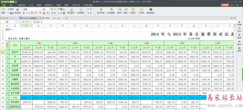 2、现在需要把“项目”列和表头部分固定,使我们在编辑表格时无论如何移动,“项目”和表头固定不动。其实方法很简单,把鼠标移C6(第C列第6行)表格,单击鼠标。