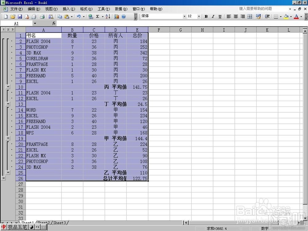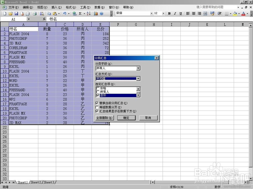 4、分类字段选择【所有人】,汇总方式【平均值】,选定汇总项选择【总值】