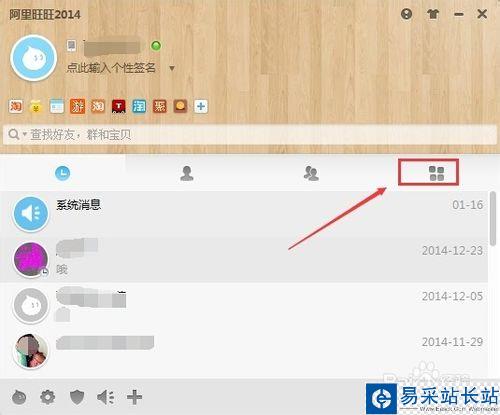 3、登录成功后,在阿里旺旺主界面上点击导航右侧的应用图标,如下图所示。