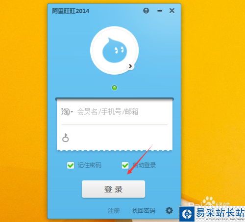 2、在阿里旺旺登录界面上,输入淘宝帐号和密码,然后点击登录,如下图所示。