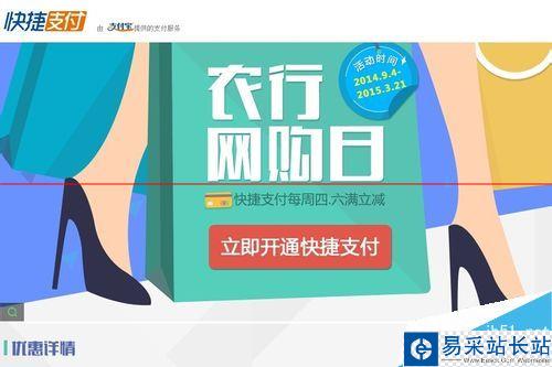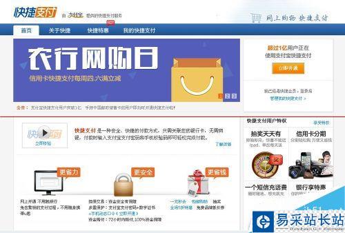 5、点击“网上购物、快捷支付”超链接,进入快捷支付页面。在此页面可以看到各大银行的优惠信息。