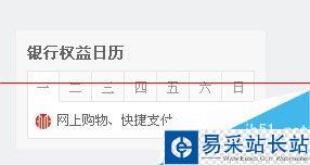 4、绑定完银行卡我们回到刚才我的账户>我的银行卡页面,在右边的银行权益日历,可以看到一些快捷支付优惠信息,选择周一~周日,可以看到每天的快捷支付优惠。
