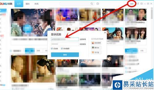 6、电脑端登陆怎么使用呢?请看下面:首先在电脑上打开优酷首页或者优酷客户端,点击右上方登陆入口,弹出登陆出口,在登陆窗口右边选择登陆方式。