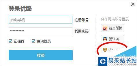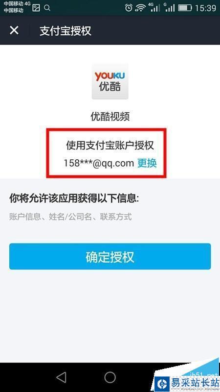 4、授权支付宝账号登陆,注意,必须使用购买够优酷会员的支付宝账号登陆。