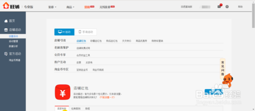 作为小卖家要经常做些吸引客户的活动才能增加自己店铺的销量,大批量的做付费的活动消耗又太大,怎么做一些免费的活动呢?这里给大家演示一下,怎么给自己的店铺建立红包活动。